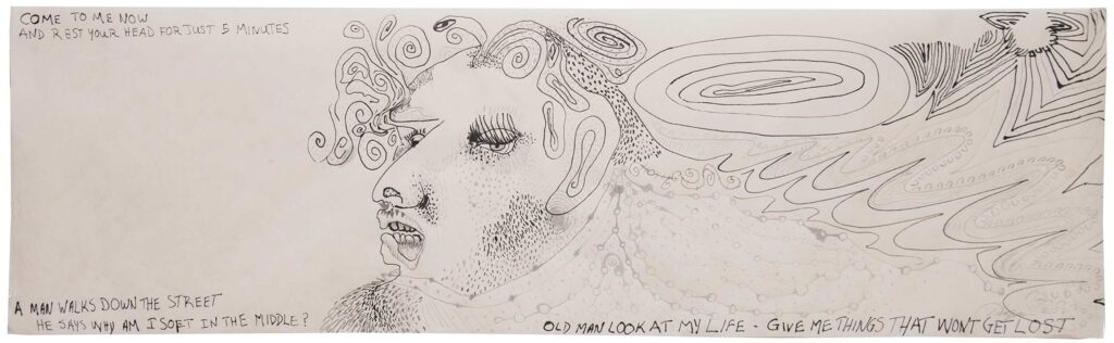 The works on view were drawn, often with very little direct forethought. A few are prints, and hold within them the records of the route taken in their making, but most are sketched directly on paper all in one sitting.